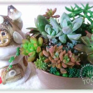 真夜中にとりあえず植えておいた未完成の鉢🌱 ご飯前にご飯後にちまちま💦 セダムちぎってちまちま…💦 ダイソー産多肉をちまちま…💦 (*´∀`*)ノフーッ…なんとか完成💞 仕事の疲れが寄せ植えで癒やされました~🍀 楽しい~♬*♪♡