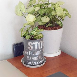 長年使っていたデスクトップパソコン💻️を 先日ノートパソコンに買い替えまして パソコンデスク上に観葉植物🪴を置けるスペースが出来ました。 どんどん増えるシンゴニウム🍃は只今5鉢也😄