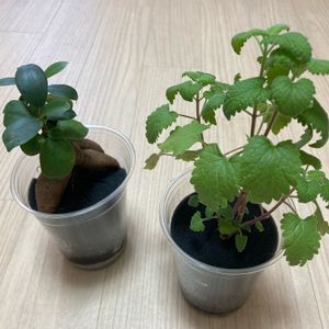 テーブルプランツのガジュマルとキャットニップ。なるべく陽に当て、水もやりすぎないようにしてますが、葉が丸まってシャキッとせず…。新芽はゆっくりですが出てきてます。ヤシの木は窓辺に置かずとも葉がピンと伸びて元気でした。 元気になるにはどうしたら良いのか…🤔🤔