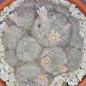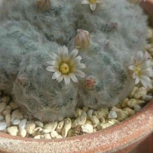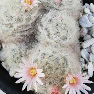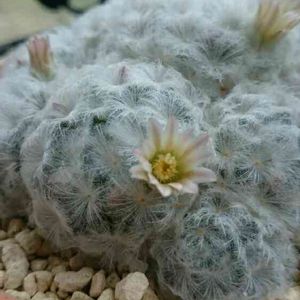 こんばんは😃🌃 冬咲きのモコモコ🌵ちゃん🌸咲き始めました😙🌸 優しい花色ですね❓😅 白星🌵🌸