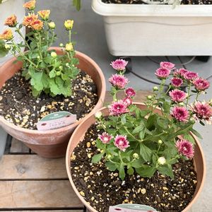 おはようございます✨ 今朝は湿度が低くて😆風が爽やかです🎵 1️⃣昨日買った、ハクサンのガーデンマムパックス❣️ 今朝☀️植え付けました😀 小さい花が可愛いなあと思って2株にしました😄 2️⃣ベランダから空を見上げると、うろこ雲☁️