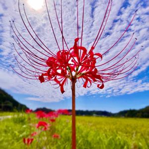 今日のお花🌸ヒガンバナ♡ 今朝は 扇風機を回してたら 寒くて止めました〜🍃 やっと 秋らしい朝😅 涼しく感じましたよ♪ 昼間は まだ真夏ですが…(;^_^A ①過去のpic 私のお気に入り〜🤭♡ たまたまヒガンバナの蕊と うろこ雲の筋が 重なったように見える 一枚なんです❁.*・゚ ②③淡いオレンジ色のような ピンクがかったような〜🧡 最近 こんな色のヒガンバナを 身近で見かけるように なりました 🏠裏の畑で(ご近所さんの) 咲いてました🌸 こんなヒガンバナなら 攫いたい〜😎😁