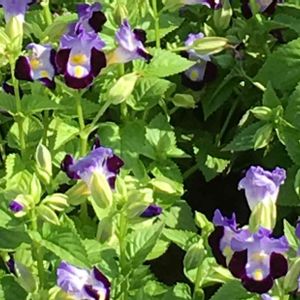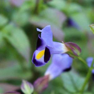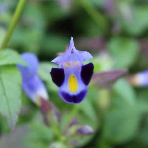 正面から見ると、宇宙人の顔のようです😄 トレニアでしょうか。 ハナウリクサ、ムラサキミゾホウヅキという別名もあるそうです。