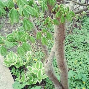 イロハモミジに続きオオモミジです。 双方似ていますがイロハモミジの外周の葉の重鋸歯と違いオオモミジはギザギザが一重の単鋸歯で見分けられます。