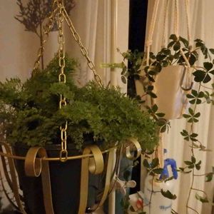 スコッチモス ヒメモンステラ ポトスマーブルクイーン ヒメモンステラは植え替えました🤗 洗濯物のBUMP OF CHICKENのTシャツをバックに洗濯竿にかけてるハンギングたちです🥰