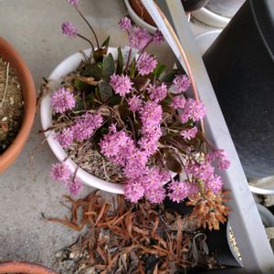 うちでは忘れられた存在のレディボウリアのガルピニー😅 外の隅っこで冬越し、気づいたら🌼🌼🌼🌼🌼🌼いっぱい咲いてる🙌😍 ☀当たったり陰になったり、☔は当たったり当たらなかったりのベンチ下🪴 常に乾き気味だからか?葉っぱが小さくしまっている。 ☔☁☁⛅️⛅️☁ お天気が曇りのチャンス👍 恵比寿笑い、バロニー、チビグラキリス、サンゴミックス等を雨が降る前に室内から外へ