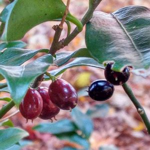 シロダモ クスノキ科シロダモ属の常緑高木 ・雌雄異株 ・秋に黄白色の小さな花を密集して  つけます ・雌花の柱頭は先端が丸みを帯びて     いて、ちょうど綿棒の先端のよう  な外見をしているそうです。 地元のお山散策してみれば①の花、雄花を付けた雄株です。 ②③こちらは木が高く綺麗に撮影出来ませんでしたが、綿棒のような柱頭が見えているから雌花のようです②③は雌株です この花の開花時期は通常10月下旬から11月上旬です また、赤い実は前年に咲いた花が1年かかって成熟したもので、熟するのは同じく10月から11月頃です。 その為、雌株は晩秋の時期に花と赤い液果が同時に存在しているという特徴があります。 本来なら②③の花が付く木には赤い実があるはずですが、ありませんでした。 実の付きが悪かったのか? 鳥の餌となったのでしょうか? 今回赤い実が見つからなかったので、 ④昨年11月に東京上野で見たシロダモの赤い実を添えておきます。 今年、もしかして、ムクドリ、ヒヨドリ、メジロ、ツグミなど🐦さんのエサとなったのでしょうか? ⑤は、シロダモの葉裏は白色です。    だってシロダモン✨ そしてシロダモの葉は枝先に集まって付く様子も撮れました。   そして雌株なら普通花と赤い実が同じ時期に見られます ①の木と②③の木は別の場所で見ました 📷 ①2025/11/23 ②2025/11/11   ⑤2024/11/15