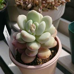 「ルスビー」 ベンケイソウ科 パキフィツム属 大きな変化はないですが… 葉っぱのぷっくりがちょっと締まってきました 色がきれい~✴です😄