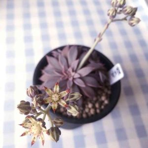 思てたのと違う…(゚ω゚) クラプトペタルムの花はセダム系なんだなぁ エケベリアみたいなのかと思ってました 紫の葉に、赤い縁取りのベージュの花 ちょっと秋色だけどシックでいいね( ˊᵕˋ )