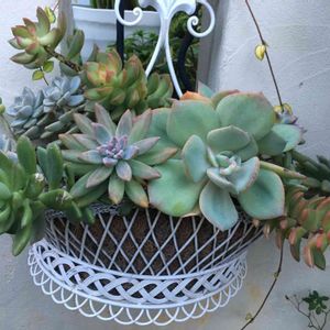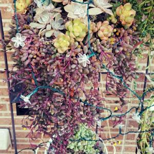 玄関先の多肉ハンギング植え。 春に植えて乱暴気味に広がったけど、 これはこのままで。