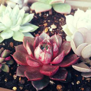 つぶつぶ系のセダムを寄せた鉢@ 乙女心ちゃんの紅葉っぷりがステキすぎて♡
