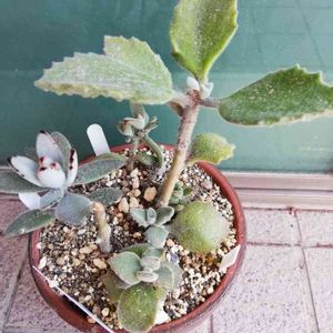 カランコエ ̄(=∵=) ̄ 💎プラチナ 👹ゴ⭕ウ園芸様産 🌱草丈10㎝小型種で成長はおそい🐌💨💨 5年前にヤフオクで8000円で落札だったかな。 多分、沢山の方が栽培にchallengeしているけど殆どの方が失敗しているね。 難攻不落の貴婦人だよ➰ 📸した後にカット✂️して挿し木しました。 🐰