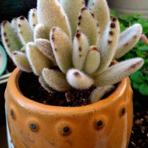 温かそうなもけもけと 縁取りの点々が可愛い カランコエ・星兎耳さん🐰🤍💚💛🤎 中心部の触り心地最高🐰💕