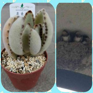 久々の多肉は星兎耳🐰⁉︎ 点々の縁取りとふわもふが 可愛らしい✨ 名前に自信がないのですが 星兎耳だと思うのですが… もし違っていたら宜しくm(_ _)m