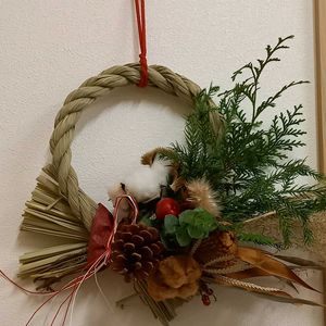 お正月飾り しめ縄作りました☺️ 一度作り方を教わり、それからは松ぼっくりや造花をあわせて作るのが楽しみになりました🌿 今年はシダローズをいれました🌹 2枚目は、鏡餅…編んでみた😅 なんとなくこんな感じかな…と作ったら上が大きかったな💦 でも…可愛いからいっか〜って、 めんどくさがりだから…🤣 今日は5:45に目覚まししたのに… 起きたのは3回目の目覚まし6:15……😳なぜ? え、鳴った? 無意識に止めたかなー? 明日はちゃんと起きなきゃー🌞
