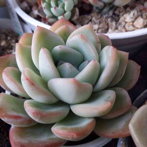 今日は朝から寒くて、雨になって☔️ 明日からはお天気が続きそう✨ 小さな子たちをムギュッと寄せた鉢 アマビレもむっちりして可愛い💕 ちょっと深く植えすぎて窮屈そうになってきた💦 みなさんはこんな状態だったら、植え替えしてあげますか? 最初ブラックローズと書いたけれど、それは別の子だった 真ん中の縁が赤くてシュッとした葉、だれかなー😅