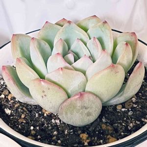 先程届いたバロンボールド! 桃太郎とかザラゴーサのような爪系の多肉が好みだったんですけど今回「1個ぐらい自分が選ばないようなエケベリア買ってみよう」と思いこの子をネットで注文。 注文した当初は「すごい見た目だな…😅」と若干引いていましたがいざ届いて開けてみるとなんと綺麗な色合いで可愛らしいことか…!! 脳内で革命が起きたような衝撃が走りました😳 最初はポットに植えようと思っていたので鉢は用意していなかったのですが、この子似合う鉢を用意しなければという使命感に駆られ、近くの園芸店で買ってきました笑 大きさは手のひら位でかなり大きめ! 存在感バッチリの美人さんです🥰 そして右のおチビちゃんはオマケで付いてきたアマビレちゃんです。 とても小さい子ではありますが綺麗なロゼットのこれまた美人なエケベリア。 アマビレは私の中でトップに食い込むほど好きな多肉ちゃんなのですごい嬉しかったです🥰 2人とも大切に育てようと思います✨ バロンボールドさんで目指せデカエケ!!