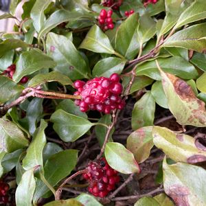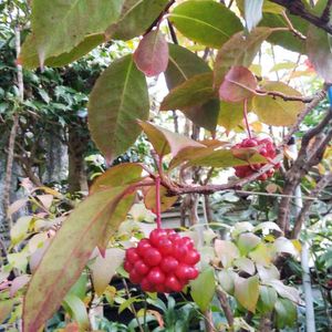 海蔵寺の庭にあった低木です。千両や万両に混じって赤い実が桑の実のように成ってました。