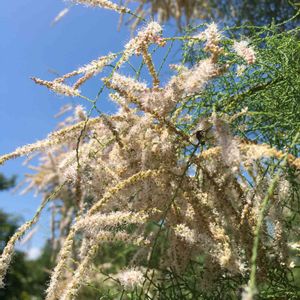 ギョリュウ 御柳✨ ギョリュウの仲間(タマリクス属)はヨーロッパ、アジア、アフリカに約75種が分布 中国中部~南部原産のタマリスク・キネンシスを指して和名でギョリュウと呼ぶ 樹高は4~7mになり小~中高木で冬は落葉する 枝は非常に細く 1mmくらいの細い針型の葉が重なり合って伸びていく 新しく枝が伸びた節に 春~秋の間に2~3回花を咲かせる 花は5枚の花びらがあり 淡い紅紫色で小さく穂状にまとまって咲かせる ギョリュウの仲間は 海岸や内陸の塩分を多く含む土壌など 植物が育ちにくい場所に自生する塩生植物 枝葉に「塩腺」と呼ばれる器官があり 余分な塩分を体外に排出できる 乾燥地から湿地や砂地でも育つ あまり他の樹木が植えられない場所でも育ち 水を非常に好む湿地に適した数少ない庭木のひとつ 日本には江戸時代に渡来 年を経て垂れ下がる枝がふえ その姿が柳に似るところから 「柳」の字が当てられ「ギョリュウ」の名前が付けられた 英名はタマリスク 2022.7.18 大船フラワーセンターにて撮影 初めて見る ほわほわの姿が可愛いくて✨ 🏷️木曜モフモフ に参加させて下さい🤗
