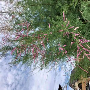 こんばんは✨ 盆栽にも使われる 御柳の花は薄ピンクで 、あまり見ない花かもです😊 柳なので枝も柔らかくて手で選定し、水やりだけで余り世話いらず😁