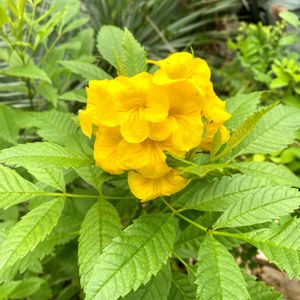 《立凌霄》タチノウゼン💛Tecoma stans 別名《金鈴樹》キンレイジュの名のように、 金色の花が鈴なりになったところ、観てみたいな✨ イエローベル(Yellow Bell)とも💛🔔♬