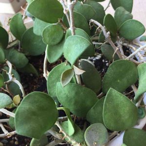 新芽がぴょこぴょこ第2弾🌱 最近よく登場のホヤさん。 上に上にぴょこぴょこ伸びてる姿が 可愛らしい💕 植え替えした時は根っこがガチガチで かなり窮屈になってて 葉っぱも貧相だったけど、 持ち直して良かった〜😄💕 花座があったはずなんだけど、 どっかに埋もれたのかなー? それとも植え替えの時に 取れちゃったかなー💦 今年は咲きそうにないね😅