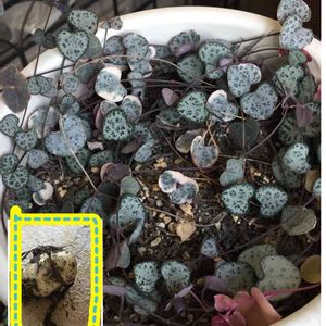 春に葉っぱが枯れちゃって ダメになったかなぁと思ってたハートカズラ。 左下のお芋が掘り返したら何個か出てきたので 再度埋めたら、 ワラワラ芽が出て増えてきた😄💕 ハートカズラって強いね(´∀`)