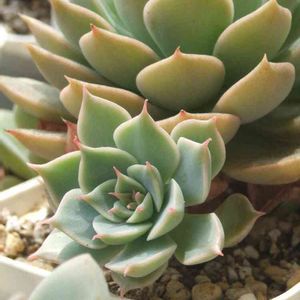 多肉植物の魅力を教えてくれた白牡丹 元々はサボテンを集めていましたが、ある時ホームセンターで寄せ植えにと、数種類の多肉植物を買いました、そのうちの一つが白牡丹でした、多肉植物の育て方を調べてる内に、葉挿しで増やせることを知り、早速2.3枚の葉っぱで挑戦してみました、結果はすべて成功!葉っぱから増えるなんて衝撃的でした、その時の感動は今でも忘れません。 それから5年ぐらいたちますが、毎年白牡丹の葉挿しをして今では4世代目の白牡丹が育っています。 一株から始まり、今までに百株以上の白牡丹が育ち、寄せ植えに欠かせないものとなっています。 丈夫で簡単に増やせる素敵な白牡丹、これからもたくさん増やしていきたいです。