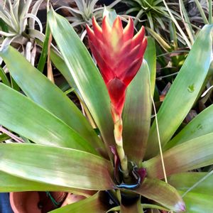 Vriesea racinae 住吉大社にお参りし、路面電車に乗って天王寺の赤松種苗さんに行きました。赤松種苗さんで買った鉢にココチップで植えました。赤松種苗さんは昔ながらのお店と可愛らしいお店が並んでおり、園芸資材や球根、苗など色々販売してました。お店の方が丁寧でまた行きたいです!