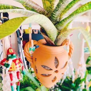 とにかく吊りまショー開催中🎣✨ 置き場所問題解決の糸口として、、、どんどん大きくなって困ってたコから 体操🤸競技の吊り輪みたいだな😅 テラコッタ鉢は、中に電球💡✨を入れて室内灯にしていましたが、本来の鉢として再デビューです😉 うしろに壁にかける🕳穴もあるけど、重たいから、このスタイルで🙉