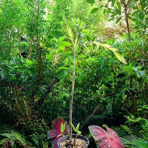 Chamaedorea plumosa こちらも良い感じに育ってきたので販売します。 葉や幹が細い種ですが2本植えなのでそこそこボリューム感出てます。 現状通常の羽状葉(pinnate leaves)でアルボレセントの細い版といった印象です。更に大きく成長するとジョオウヤシのような立体的な羽状葉(plumose leaves)へと2段階進化を遂げる予定です。 耐寒性があり地植え用としてかなり面白いヤシだと思います。