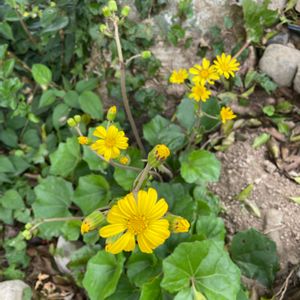 ツワブキ 飛翼(だったはず黄色の花) 蛍斑でやわらかい切れこみ入りはずだったのに、、、 気がつけば普通の緑&丸葉😭 お花がキレイに咲いてくれているから良しとしよう😌
