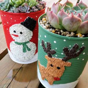 pecoさんの リメイク缶がきたぁ~✨ 早速トナカイ缶の方に ルドルフを♪♪ スノーマン缶の方には 彩り豊かに寄せ植えを💕 もこもこの立体感が 可愛いすぎるっ❤️