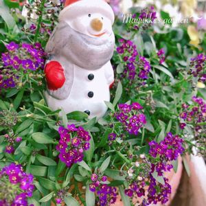 おはようございます☂️ 今日は朝から事件がありました‼️ 雨なので駅まで主人を送って 行きました。そこでなんと‼️ 彼は私の鍵を持ったまま出勤して しまいました…私が家に入れない(><) 家の中にいる子供に電話しても、 寝ていて出てくれない💦 雨が降る寒い朝に、玄関の前で 途方にくれるっていう悲劇です… でも実家に合鍵を預けていたのを 思い出し、事なきを得ました‼️ 焦っていたので、 すぐに思い出せなかった(笑) 玄関前のスィートアリッサムの中で、 ニヤリと笑うスノーマンに、 ちょっと腹が立ってしまいました(笑)