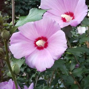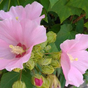 たくさんの蕾が次々に開花するフヨウのお花😍 二輪目は薄いピンク🌺で内側に可愛いハートの花びら💓
