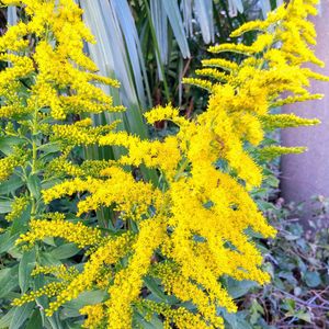 『セイタカアワダチソウ💛🌿』 綺麗な黄色の花を咲かせています‼️ キク科 アキノキリンソウ属 花粉症の濡れ衣を着せられた セイタカアワダチソウ💛🌿 こちらは虫媒花で花粉を飛ばさないので 安心してくださいね‼️ 花粉症第3位のブタクサが 秋の花粉症の原因ですよ❣️