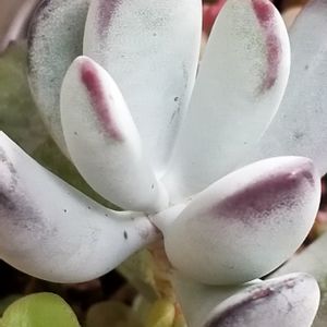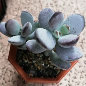 おはようございます⛅ 葉は白粉に覆われ、ぷっくらと肉厚な葉 先端に一筋の濃いピンク色の線が入って可愛い