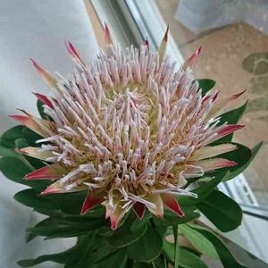 キングプロテア リトルプリンス お迎えから20日経過 特に変わり無し、陽の当たらないリビングに2日間置いておいたら、3枚目のpic、上の方が白くなった位です💦 慌てて3日目に3階の南向きの窓辺に置いてあげました。まだ白いところ赤く戻りません😓 お日様大事☀️