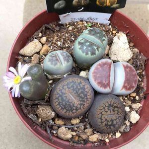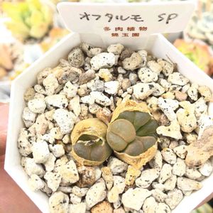 2019/11/12、ふたご同時に咲きました。 オフタルモ、徒長なのか生長なのか。 薄っすら桃色が可愛らしいです。 #風鈴玉 #Ophthalmophyllum #オフタルモ #コノフィツム #コノフィツム オフタルモ