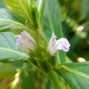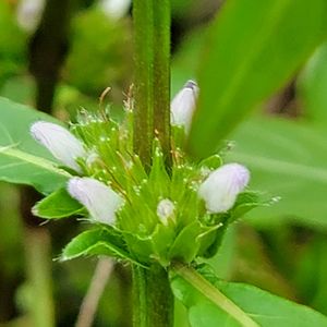 オギノツメ 花を大きくしてみました👀 茎は4稜の方形で細毛あり。草丈は、30~60cm。葉は、対生。線状披針形で長さ3~15cm、幅0.5~1.5cm、鈍頭。全縁で波打つことがある。 花期は8月から10月。葉腋に柄のない淡紫色の唇形花を輪状に束生。筒状で長さ10~13mm。上弁は2浅裂。唇弁は3浅裂し、長さは、3~5mm。雄しべは長2,短2の4本がある。萼は5中裂し、先は尖り、長さ約6mm、果期に約10mmに徒長。 キツネノマゴ科オギノツメ属