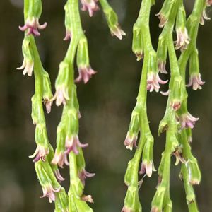 ニガカシュウと、オギノツメの追加投稿 1️⃣2️⃣ニガカシュウ(苦何首烏)の雌花序 前回雄花序を投稿(9/21)し、花友さんの過去投稿から雌花序を教えて頂き、探したところ、見つかりました 雌花序は、雄花序に比べると地味です 雄花序と同じく白色から紫色に変わります 雄株が殆どだと言われているが、近くに雌株がありました 花は6裂片で雌蕊の柱頭は3個、先端が二つに分かれる 雌蕊の周りには退化した短い雄蕊が6個ある 花の下の子房は長い筒形 3️⃣4️⃣5️⃣オギノツメ(荻の爪)の追加投稿 咲いている様子と、群生の様子を載せました お近くで探す時の参考になさって下さいね 池の前のぬかるむ泥の中に咲いています