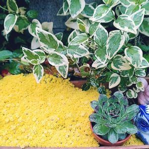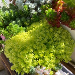 おはようございます。 4/24(月) 10-18 営業です。 昨日は私が不在のところ、たくさんのお客様がいらしていただいたようでありがとうございました🙇 販売商品のご案内です。 ①モリモリ黄金細葉万年草 600円→500円 鉢から溢れんばかりの、モリモリプリプリの黄金細葉万年草。 値下げいたしましたので、この機会にどうぞ。 ②セディフォルムゴールド 今の季節は鉢植えだとちょっとしんなり?した感じなのですが、しっかり日に当てていくと締まって紅葉もします。 3枚目写真は我が家のポスト下に地植えしているセディフォルムゴールドです。 ご来店をお待ちしています😊