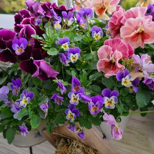 早くから植えたパンビオ💠伸びすぎてカットしたら❗隙間ができたので(^-^)紫色と淡い黄色の間にピンク系💗と紫色の少輪ビオラ💜をイン🎵雪❄️が舞うなか震えながらの作業😭 雪⛄の多い地方の方気をつけてくださいね☺️