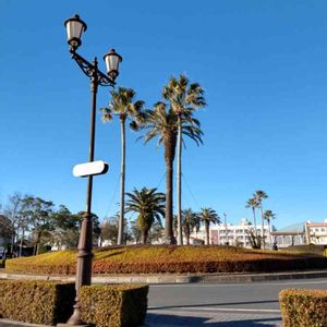 風に揺れる椰子の木に ツワブキの黄色い花 〈晴れてお散歩〉