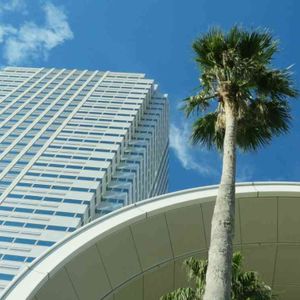 おはようございます。シェラトン前にて。椰子の木と青空🌴🌈 アロハ🤙🍀