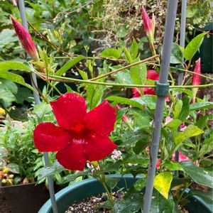 おはようございます☔ 雨の朝気づいたら咲いてたサンパラソル ビューティー❤ 葉っぱが黄色くなって落ちるのは肥料切れ???