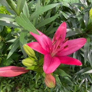 おはようございます☀️ 旦那さんの植えっぱなしスカシユリピンクが追加で咲きました❤ テカテカ光ってます✨
