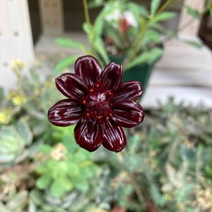 おはようございます☀️ チョコレートコスモス初めて開花まで漕ぎ着けました😆✌️ 3度目の正直です✨ 最初から立派な蕾がついてたからね~♪♪