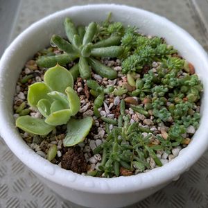 多肉ちゃんの寄せ植えにチャレンジしてみた❣️✨️ 1、2枚目が私ので3、4枚目が母にあげるやつ☺️ 昨日母と家の近くを散歩していたら、大きなお屋敷にたくさんの植物と多肉ちゃんたちを見つけて、小声でキャーキャー言いながら見ていたら、お庭におば様を発見!👀 コミュ力高めの母が「少し見てもいいですか?」と聞いたところ、快くお庭に入れて頂いて… 多肉ちゃんの色々なお話を聞いていたら、「これ、増えすぎちゃったからあげる」といってたくさんの多肉ちゃんたちを頂きました❣️😭💗 そこら中にある鉢からブチッ!ブチッ!とちぎりとって、どうぞ😊と…😍 もう感動しすぎちゃって、何度も何度も頭を下げてお礼を言って、お別れをしました🤭 今度またお会いできたら、お礼に何か渡そうね〜と母と話しております😊 素敵な出会いに感謝!🙇🏻♀️💗 画像の子達はどの種類かはあまり分かってないのですが…自力で調べたものをタグにつけておきます🏷𓈒𓏸︎ もしこれ違うよ!これはこの種類じゃない?みたいなのがあれば、コメントで教えて下さると嬉しいです😭✨
