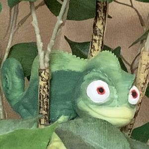 ラプンツェルの友達パスカルが庭にお散歩に出かけようとしていました💚ラプンツェルと同じで冒険心、いっぱいです💚💚